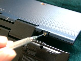 - まず、画面側の筐体のヒンジ近くにある、2本のネジをはずす必要があります。