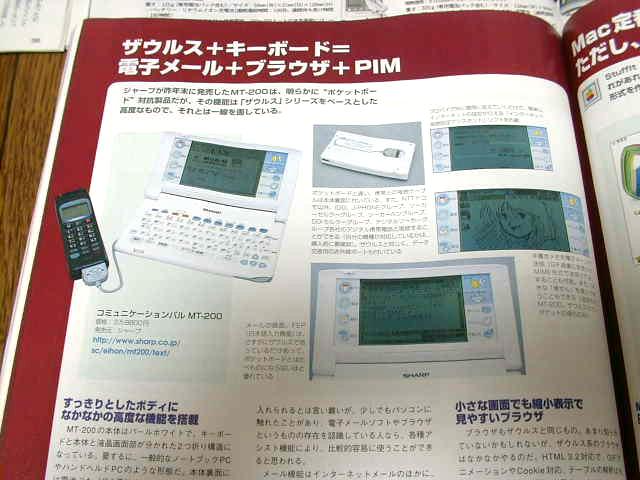 ポケボーとザウルスの中間、という価格しか頭にない評価で、10円メールしか使えないポケボーとの違いに触れていますがそれ以上踏み込んでいません。