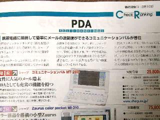 →「日経ゼロワン 2月号」では、ノートパソコン・ウィンドウズCEマシン・PDAなどという区分けの中で、コミパルをとりあげています。
