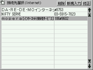インターネット画面で、接続先をタッチして、接続先を作ります。