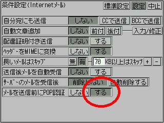 MT-200の場合は、標準の機能ではできないので、シャープから提供されているMOREソフトMT-200用メールサポートユーティリティー(POP before SMTP)をダウンロードして設定する必要があります。