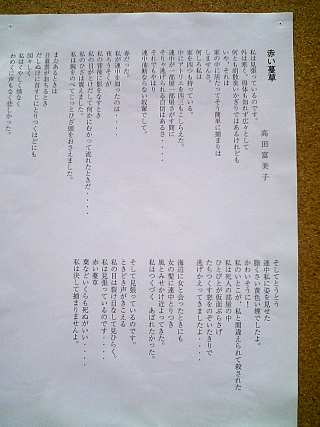 「ピグマリオン」の原画の手前に、静内高等学校文芸部の文集「あけぼの 25」が展示されています。高田富美子の作品のうちの一つはなんと「赤い蔓草」です。黄色い煙が出てくる詩です。すごいすごい、こんなものが見られるなんて。