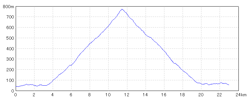 | 水平距離 | 22.96km | 沿面距離 | 23.07km |