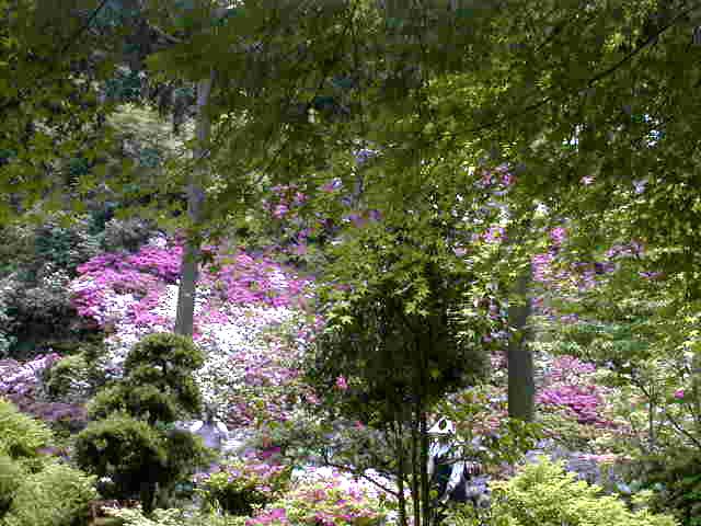 つつじは見頃で、参道の右斜面一杯に咲き誇っている。年輩の観光客は皆カメラやビデオを振り回している。