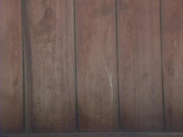 伏見桃山城の遺構で、落城の際、戦に破れて鳥居元忠等多数の者が自刃した血だらけの床を、天井として張ったものだ。