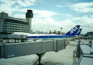 ANAの青い尾翼が次々発着する。そうだよな、国内線といえばANAだよな。インターネット予約で、最初JASで大阪-鹿児島を捜して少ないなーと思っていたら、ANAのサイトでは沢山あって両方に会員登録してチケットを押さえたことを思いだしました。