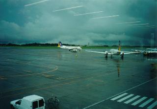 空港に着いて、チケットレスを申し出て名前を名乗りVISAカードを渡すと、航空券を出して搭乗手続きをしてもらえました。職場へのおみやげを買い、そう言えば昼食がまだだと気付き、うどんとジュースの食券を買って食堂に入ります。