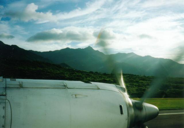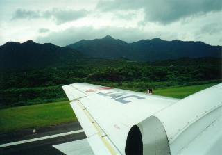 飛行場に降り立つと、南国の空気、空気の温度が違います。幸いの曇天で救われます。空港で登山届をさくっと書いて出します。バスは一回り遅れて逆に丁度良い時間になっていました。