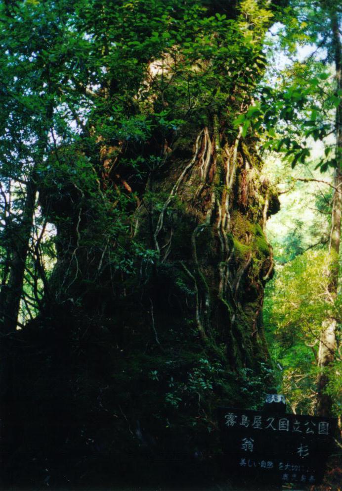 急な坂道を水に気を付けて進むうち、お立ち台のようなものが作られている場所があります。何の気なしに台に乗ると、今まで巨大な岩塊だと思っていた左手の影が、実は大きな杉の木であることに気付きます。立て看板があり、「翁杉」と書いてあります。その屋久杉に気付いたとき、思わず大声をあげてしまいました。「おおーーー!」「すっごーい!」