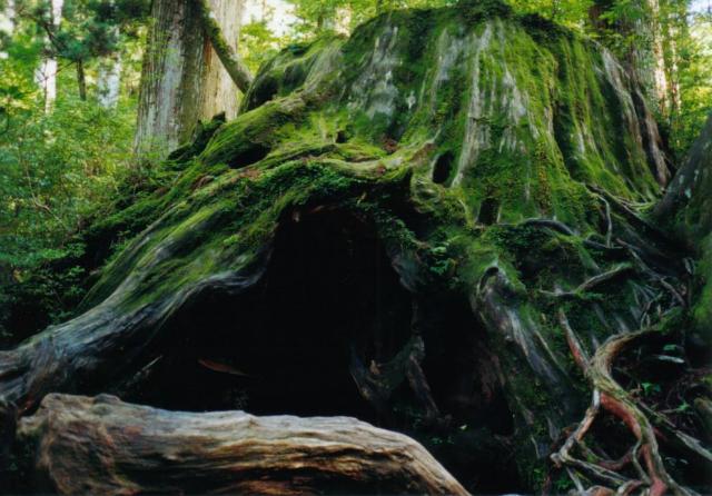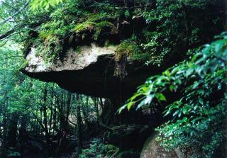 眼前に大きな岩屋が出現しました。ああ、これがもののけ姫の。立ち止まってシャッターを切り、そのまま歩き始めます。止まったら終わりだ。