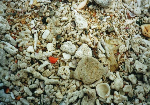 砂浜の珊瑚の殻の写真を撮ると、小さな貝が動き出します。目の錯覚かとファインダーでなく裸眼で近づいてみると、ヤドカリでした。本当に、どこもかしこも生命が溢れています。